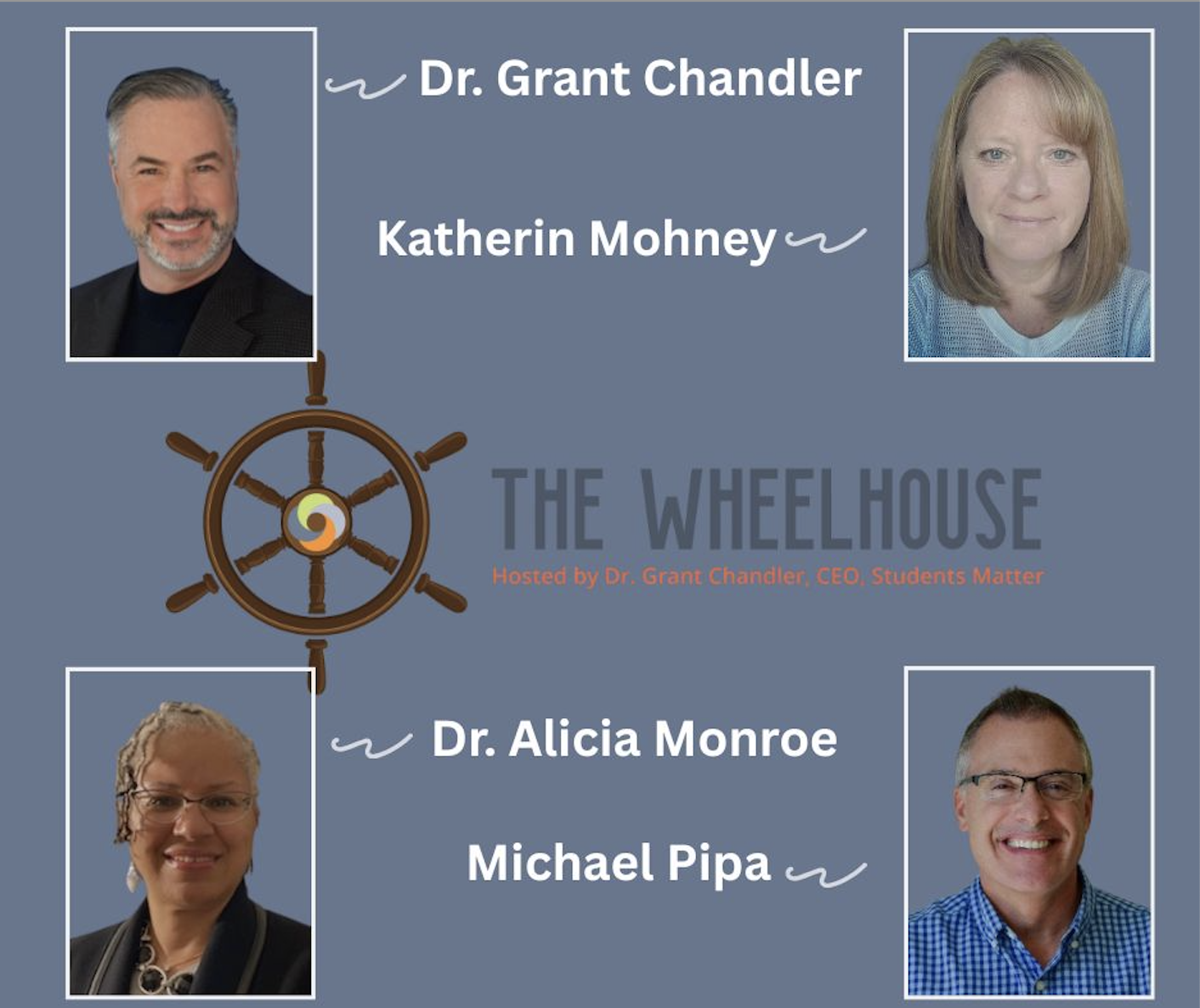 The Wheelhouse Company is led by a team of our like-minded friends and colleagues. Kathy Mohney, Michael Pipa, Dr. Alicia Monroe, and Dr. Grant Chandler. It is produced by Students Matter, LLC.